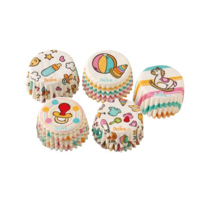 Muffin soffici con frosting decorati con piccoli dettagli di zucchero 2D che incantano.