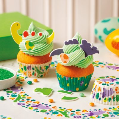 Muffin soffici con frosting decorati con piccoli dettagli di zucchero 2D che incantano.