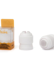 Adattatore in plastica per cornetti per fiori diretti, perfetto per cambiare velocemente i cornetti alla sac à poche senza necessità di svuotarla.  Si adatta perfettamente a cornetti con base ø 3,5 cm.