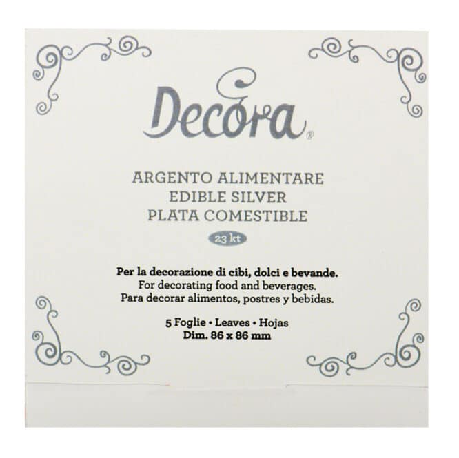 L’argento alimentare Decora è destinato a chi, in occasioni speciali, vuole dilettarsi in decorazioni dal gusto sopraffino e dall’aspetto prezioso. Le foglie, data la loro grandezza e luminosità , vengono utilizzati da chi vuole dare particolare lustro alle proprie proposte.