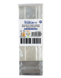 Il fondo rigido in cartone permette di appoggiare stabilmente il sacchetto. In plastica per alimenti.