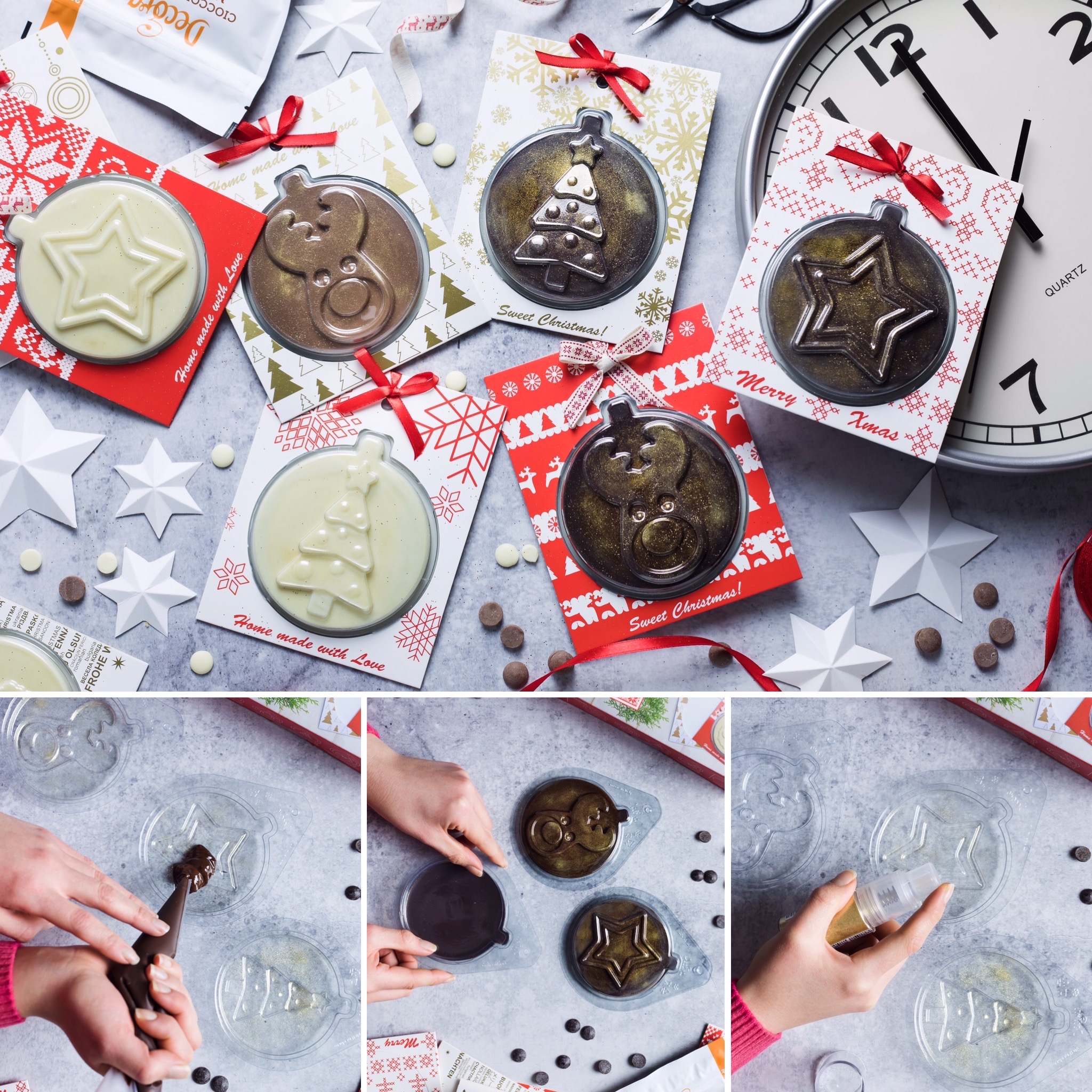 Un set unico e semplice da utilizzare per rendere originale il tuo Natale! Realizza delle Cartoline di Auguri ripiene di goloso cioccolato per personalizzare ed arricchire i tuoi regali natalizi. Utilizzale anche per addobbare la casa durante i giorni di festa, perfette da appendere con un cordoncino all’Albero di Natale.