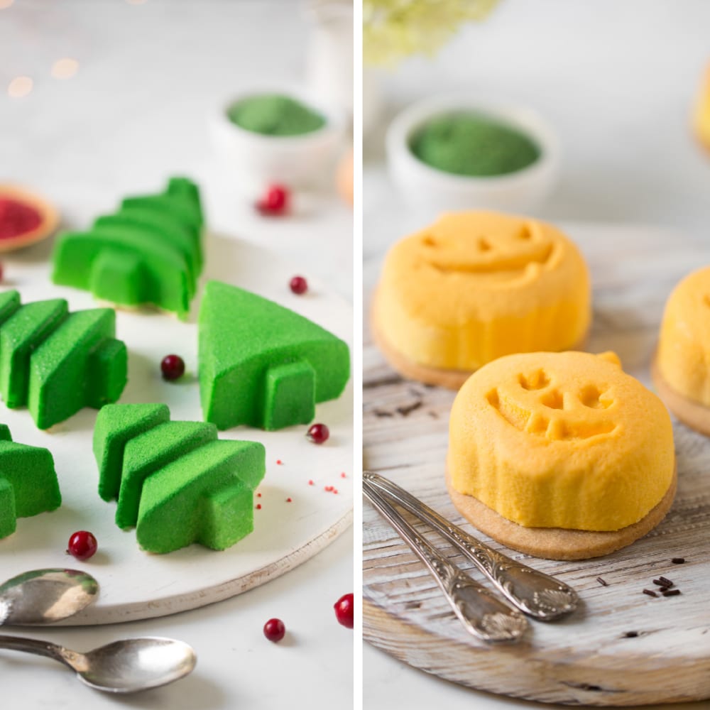 Lo spray consente di ottenere una texture unica. Facilita le fasi di decorazione, donando toni vivaci e una brillantezza naturale. Il risultato è un effetto elegante, uniforme e dall’aspetto professionale, ideale per valorizzare i dessert con un finish curato e di grande impatto visivo.
