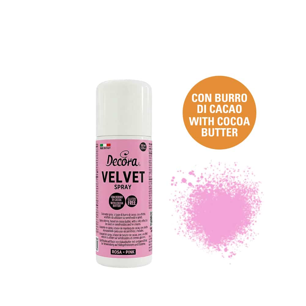 Spray colorante a base di burro di cacao, studiato per ottenere un effetto vellutato e uniforme su semifreddi e gelati. La presenza del burro di cacao garantisce un’ottima aderenza alle superfici fredde, una copertura omogenea e una finitura stabile e resistente.