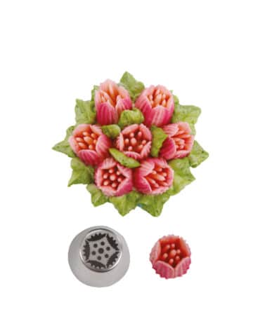 Cornetto per fiori diretti, da utilizzare con l’adattatore per cornetti 3d. In acciaio inox senza punti di saldatura, perfetto per realizzare con un solo movimento della sac à poche decorazioni floreali direttamente su torte, muffin, biscotti e dolcetti. Confezionato in blister.