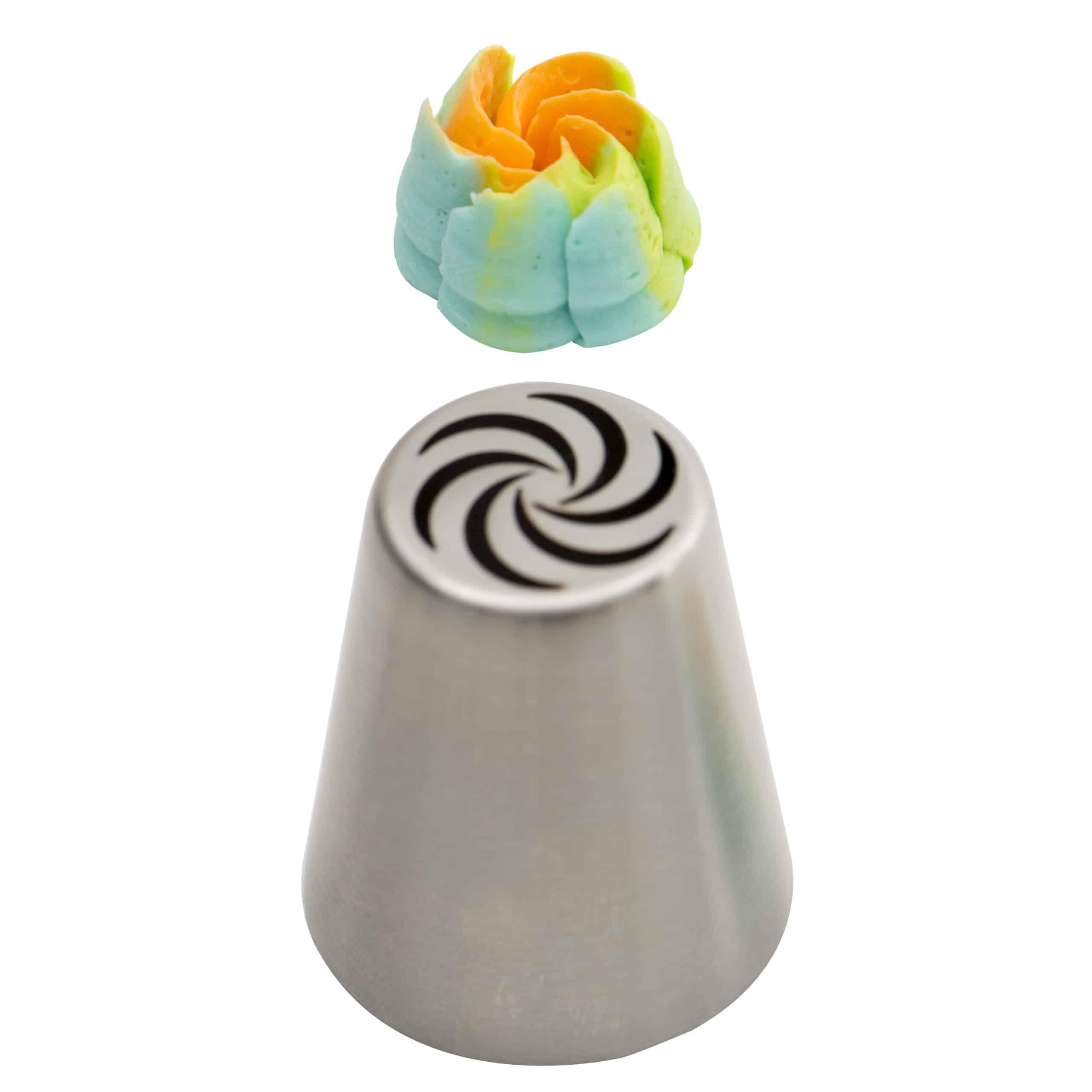 Cornetto per fiori diretti, da utilizzare con l’adattatore per cornetti 3d. In acciaio inox senza punti di saldatura, perfetto per realizzare con un solo movimento della sac à poche decorazioni floreali direttamente su torte, muffin, biscotti e dolcetti. Confezionato in blister.