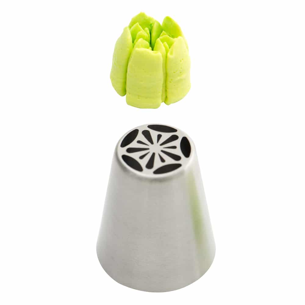 Cornetto per fiori diretti, da utilizzare con l’adattatore per cornetti 3d. In acciaio inox senza punti di saldatura, perfetto per realizzare con un solo movimento della sac à poche decorazioni floreali direttamente su torte, muffin, biscotti e dolcetti. Confezionato in blister.