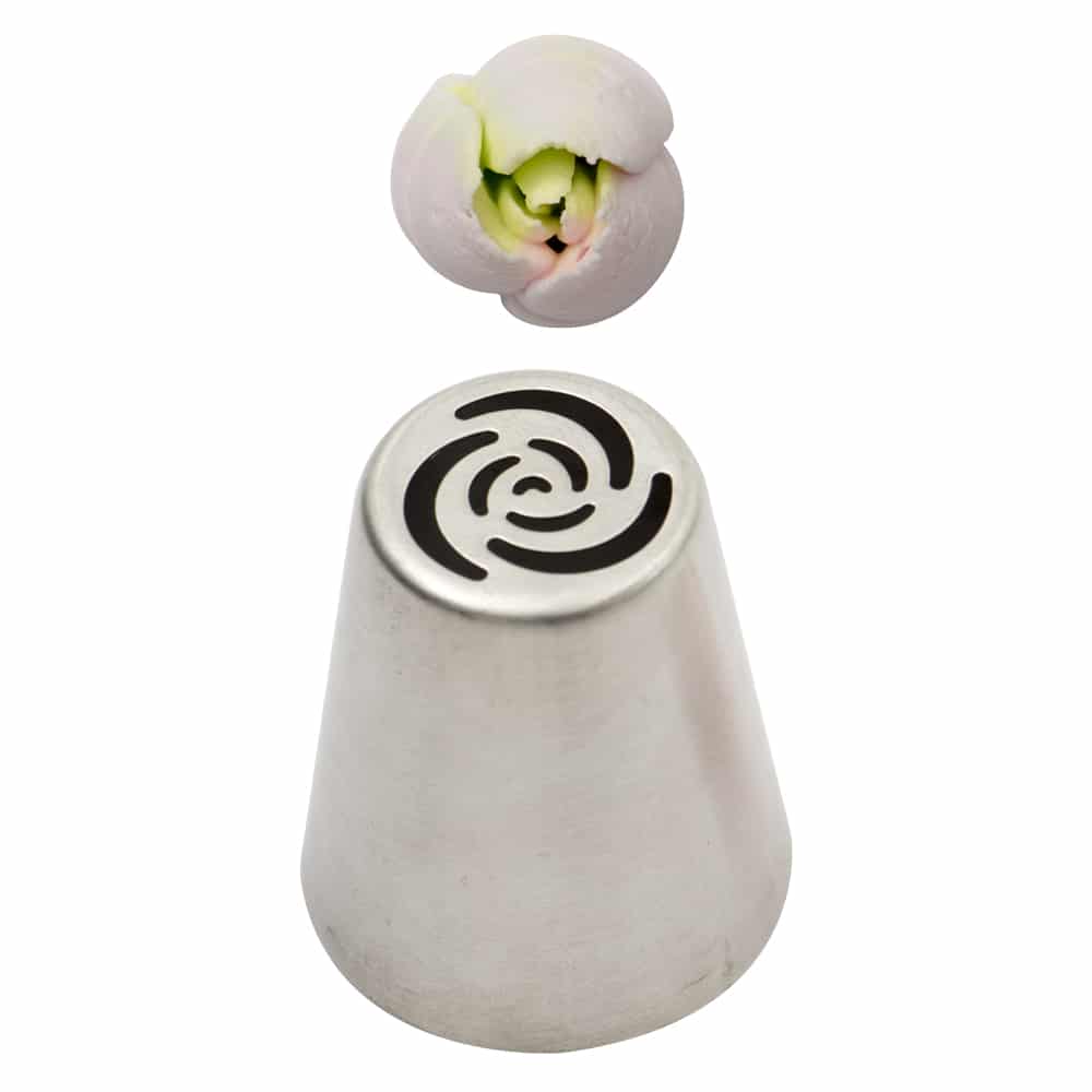 Cornetto per fiori diretti, da utilizzare con l’adattatore per cornetti 3d. In acciaio inox senza punti di saldatura, perfetto per realizzare con un solo movimento della sac à poche decorazioni floreali direttamente su torte, muffin, biscotti e dolcetti. Confezionato in blister.