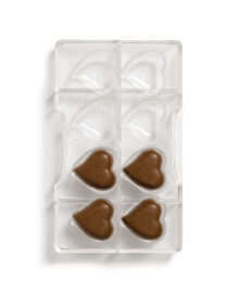 Stampo professionale in policarbonato, un materiale che consente di ottenere cioccolatini lucidi e perfetti. E’ importante temperare bene il cioccolato prima di versarlo nello stampo.