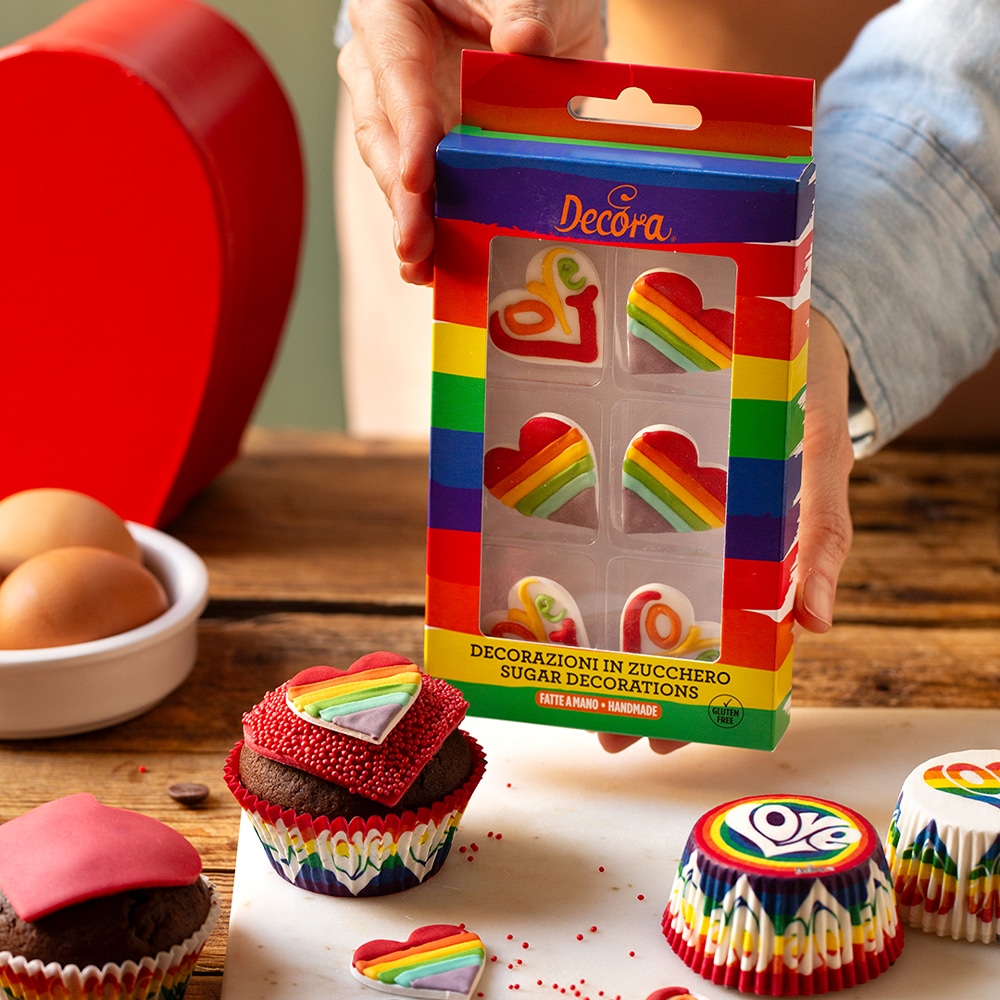 Decorazioni in zucchero, pronte all’uso. Realizzate a mano con coloranti di estrazione naturale. Perfette per decorare facilmente torte, cupcakes, biscotti e dolcetti. Confezione da 6 pezzi assortiti.