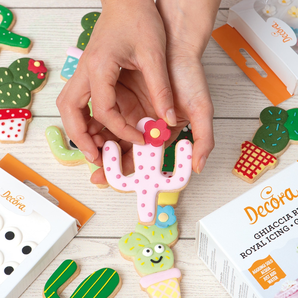 Fiori di zucchero pronti all’uso. Realizzati a mano con coloranti di estrazione naturale. Perfetti per decorare facilmente torte, cupcakes, biscotti e dolcetti. La confezione contiene 6 pezzi.