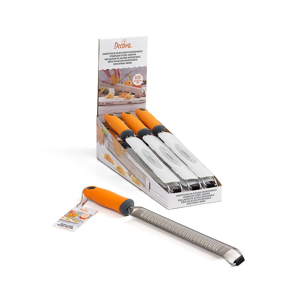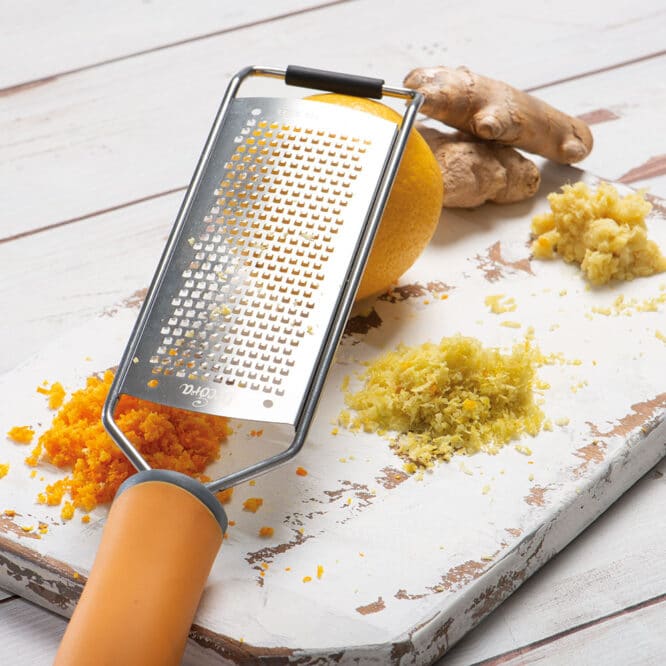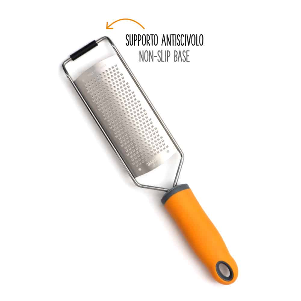 Utensile da cucina, con lama in acciaio inox, supporto antiscivolo e manico ergonomico. Indispensabile per ogni tipo di preparazione culinaria. La lama consente di ricavare scaglie sottili: è perfetta per grattugiare formaggi, spezie come noce moscata, cannella e chiodi di garofano ed ogni tipo di buccia di agrumi.