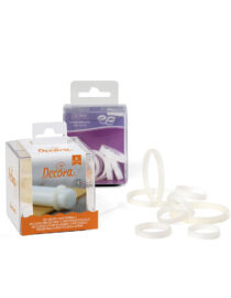 Pratiche guide da posizionare alle estremitร del matterello Decora per dare spessore uniforme alla pasta di zucchero, alla pasta frolla ed ai vari impasti. Ogni kit contiene 4 guide con spessori differenti.