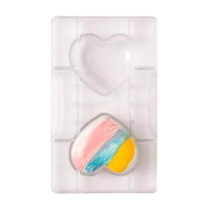 Stampo professionale in policarbonato, un materiale che consente di ottenere cioccolatini lucidi e perfetti. E’ importante temperare bene il cioccolato prima di versarlo nello stampo.