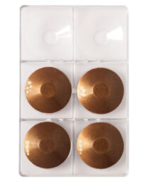 Stampo professionale in policarbonato, un materiale che consente di ottenere cioccolatini lucidi e perfetti. E’ importante temperare bene il cioccolato prima di versarlo nello stampo.