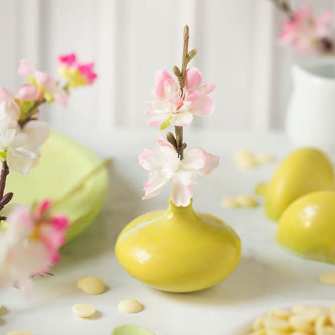 Stampo professionale in policarbonato, un materiale che consente di ottenere cioccolatini lucidi e perfetti. E’ importante temperare bene il cioccolato prima di versarlo nello stampo.