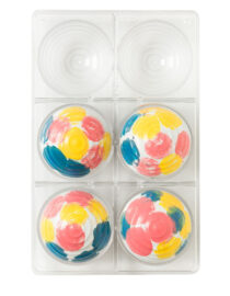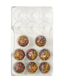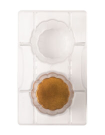 Stampo professionale in policarbonato, un materiale che consente di ottenere cioccolatini lucidi e perfetti. E’ importante temperare bene il cioccolato prima di versarlo nello stampo.