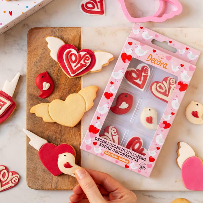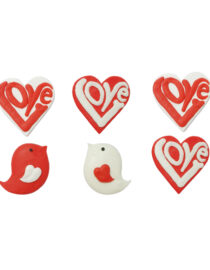 Decorazioni in zucchero, pronte all’uso. Realizzate a mano con coloranti di estrazione naturale. Perfette per decorare facilmente torte, cupcakes, biscotti e dolcetti. Confezione da 6 pezzi assortiti.