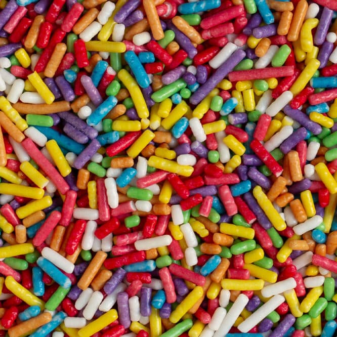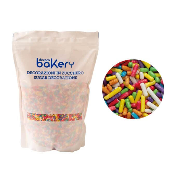 Decorazioni di zucchero, da cospargere direttamente su torte, cupcakes e biscotti. Realizzate con coloranti di estrazione naturale.