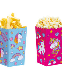 Box in cartone resistente, rivestiti all’interno con carta antigrasso, idonea al contatto alimentare. Perfetti per party ed eventi: sono ottimi elementi decorativi per il tavolo delle feste, ideali per servire popcorn, patatine o snack vari, sia dolci che salati.