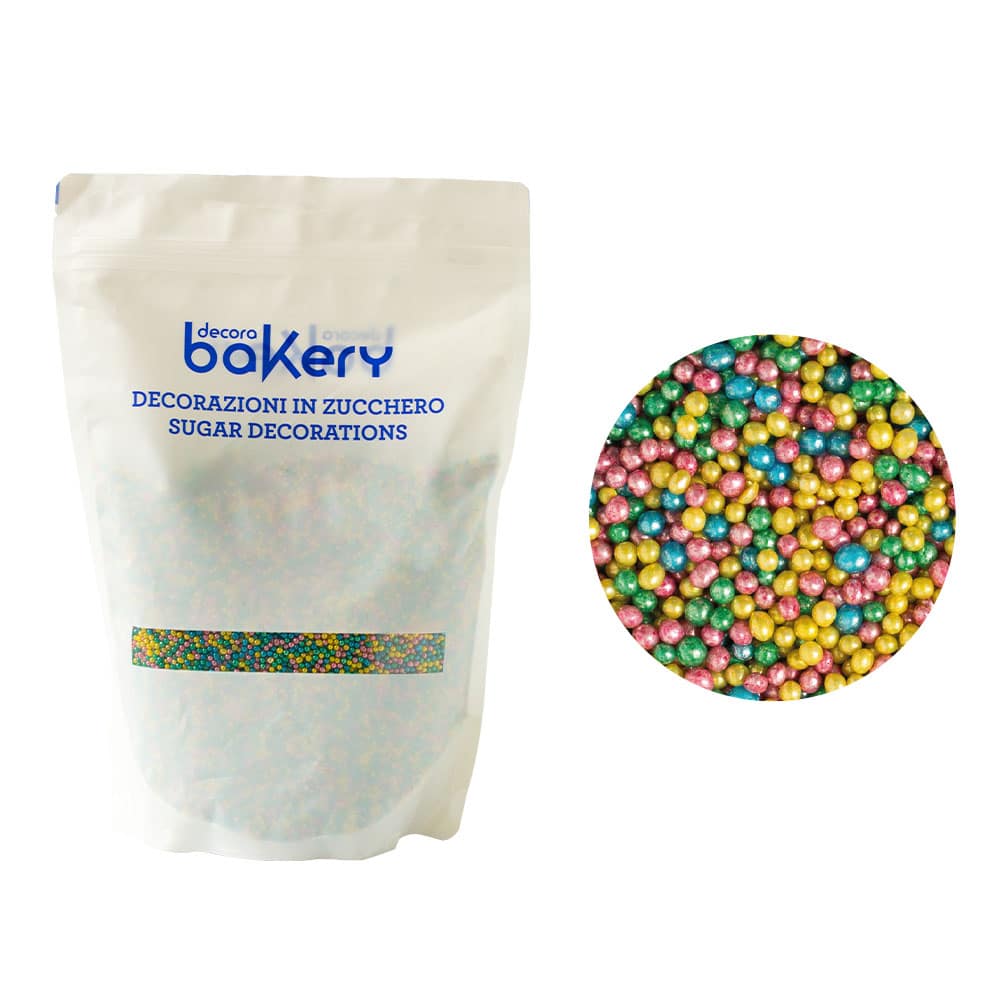 Decorazioni di zucchero, da cospargere direttamente su torte, cupcakes e biscotti. Linea Metallic.