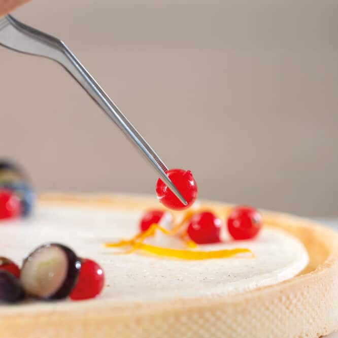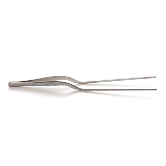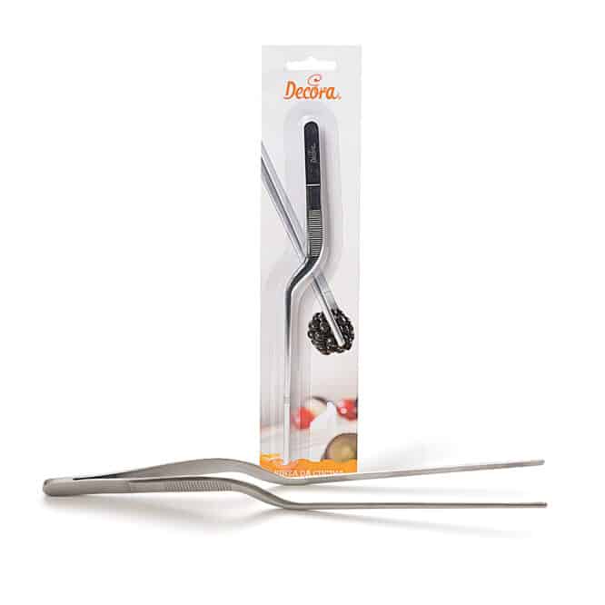Pinza da cucina in acciaio inox perfetta per cuocere, impiattare con precisione o per decorare dolci. Resistente al calore. La forma angolare estremamente maneggevole consente di evitare il contatto con i piatti durante l’utilizzo.