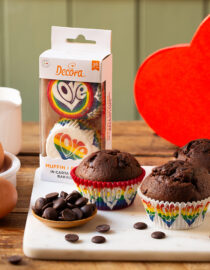 Comodissimi per cuocere, presentare e regalare muffin e dolcetti. Resistenti fino a 220 °C. In carta da forno. Confezionati in blister.