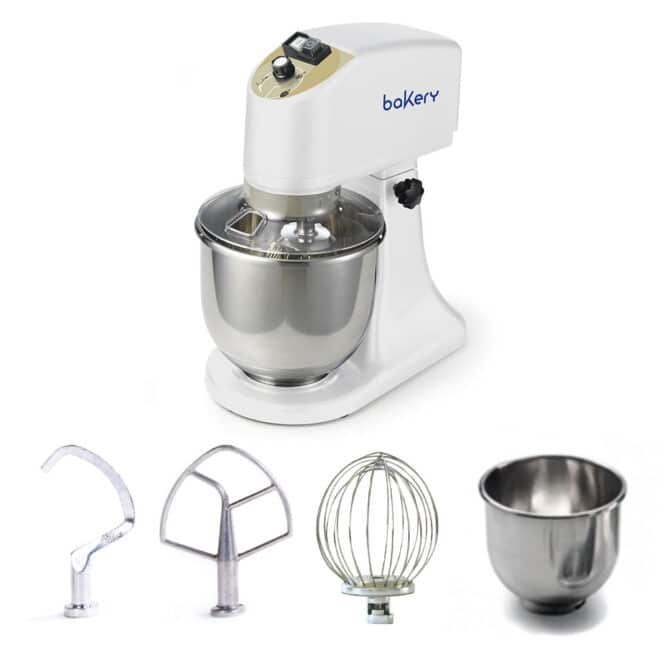 capacità di 7 lt. Completa di ciotola, gancio, frusta e spatola in acciaio.