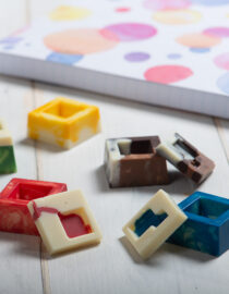 Stampo professionale in policarbonato, un materiale che consente di ottenere cioccolatini lucidi e perfetti. E’ importante temperare bene il cioccolato prima di versarlo nello stampo. Lo stampo è composto da una cavità per la base ed una per il coperchio, così da poter inserire facilmente il ripieno.