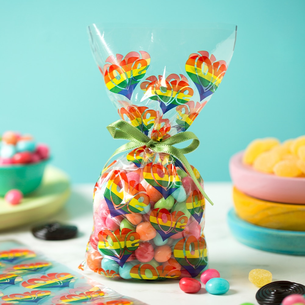 In plastica per alimenti, con fondo a soffietto. Ideali per confezionare biscotti, cake pops e caramelle. La confezione contiene 20 sacchetti.