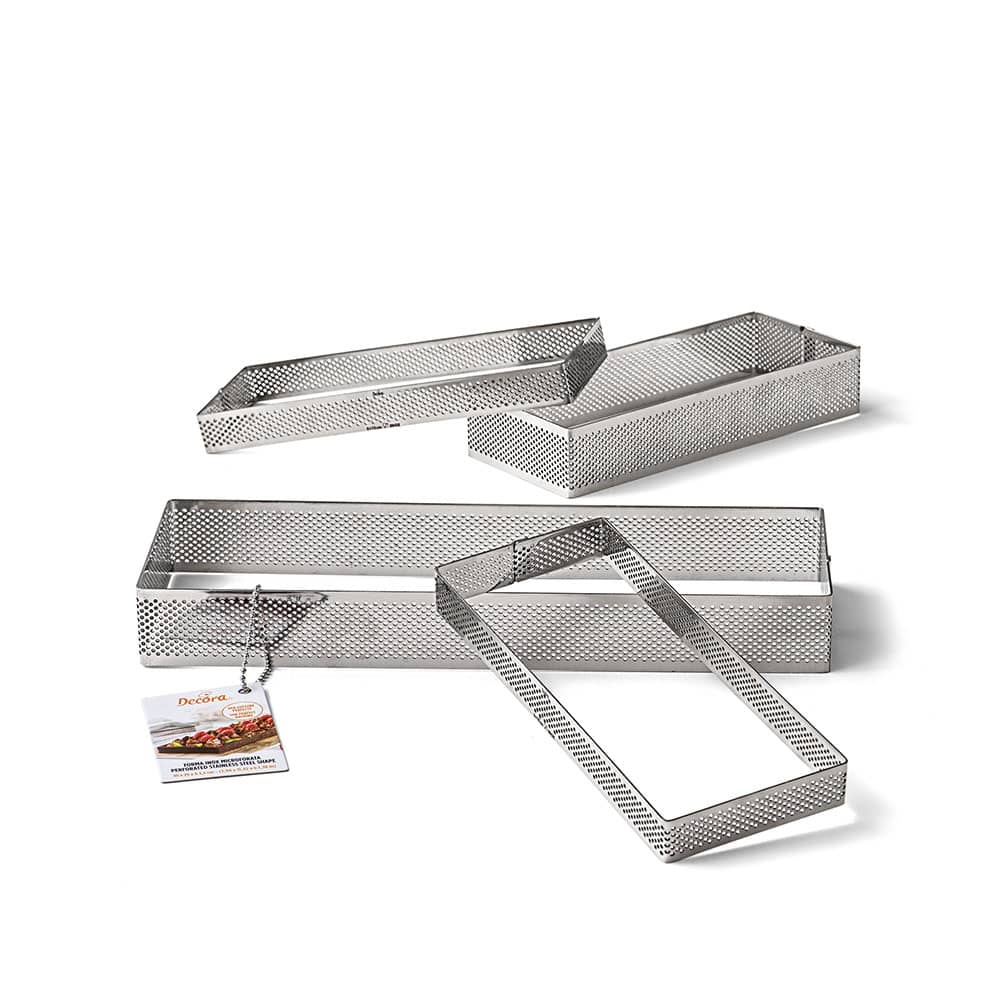 Fasce in acciaio inox microforate: i microfori consentono di sorreggere il bordo della torta, garantendo una cottura e una doratura perfetta.