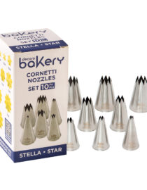 Una linea professionale di cornetti stella in acciaio inox senza punti di saldatura, da utilizzare senza adattatore. Confezione da 10 pezzi.
