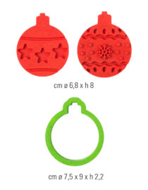 Originale set composto da un tagliapasta a forma di pallina natalizia e due imprimi-decori, che consentono di realizzare decorazioni 3D a rilievo. Per biscotti decorati subito pronti! Se invece vuoi ottenere un effetto WOW, ricoprili con la Pasta di Zucchero o aggiungi un tocco scintillante con le Polveri Perlescenti o i Pump Spray. Usali anche per decorare la tavola o per aggiungere un elemento originale al tuo albero di Natale.