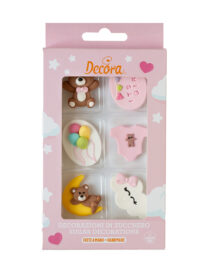 Soggetti in zucchero pronti all’uso. Realizzati a mano con coloranti di estrazione naturale. Perfetti per decorare facilmente torte, cupcakes, biscotti e dolcetti. La confezione contiene 6 pezzi.