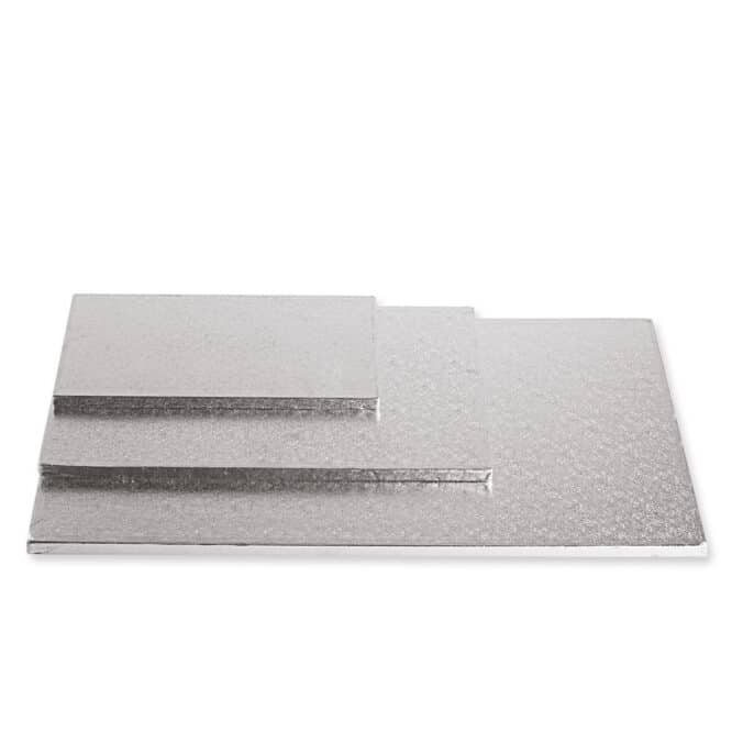 Sotto-torta rigidi in cartone rivestiti con alluminio colorato. Altezza 1,2 cm. Confezione Master da 10 pezzi.