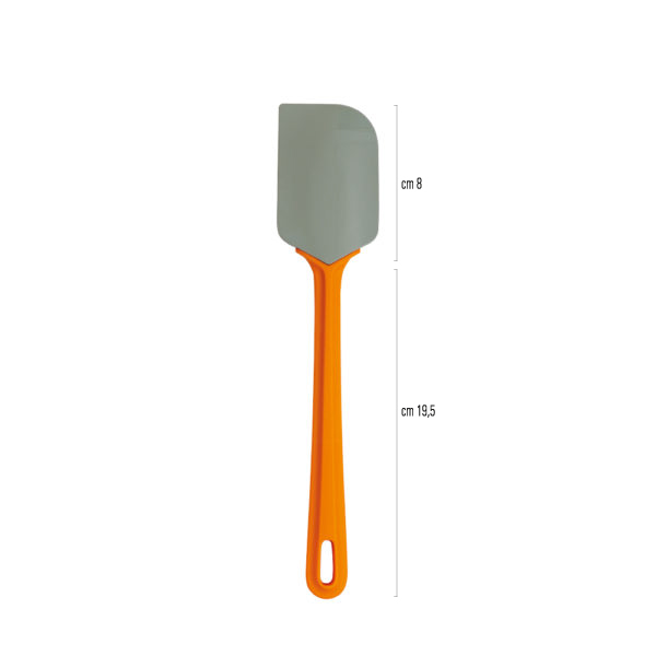 Utensile da cucina in 100% Silicone Platinum*, con manico ergonomico in plastica. Indispensabile per amalgamare ogni tipo di preparazione, dolce o salata.