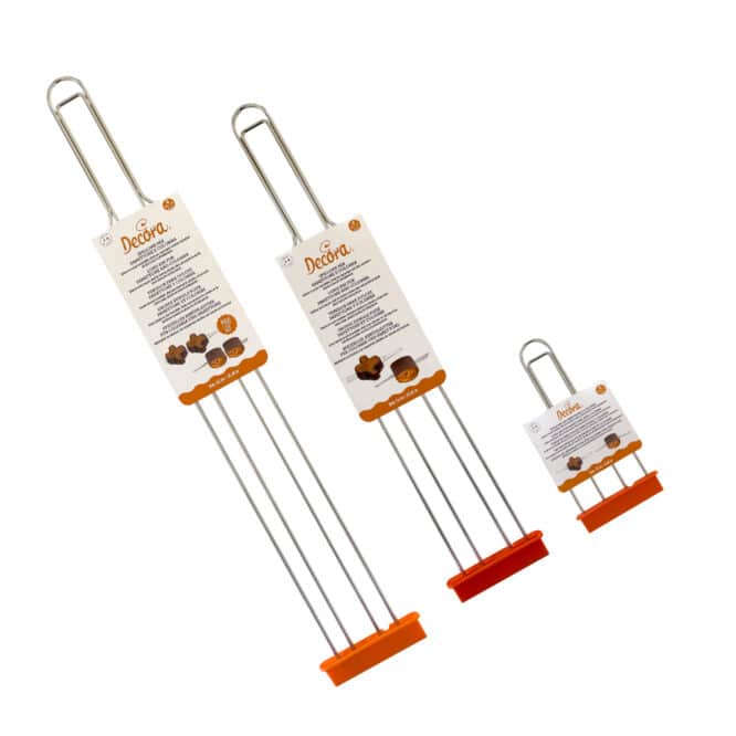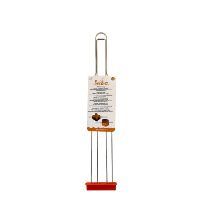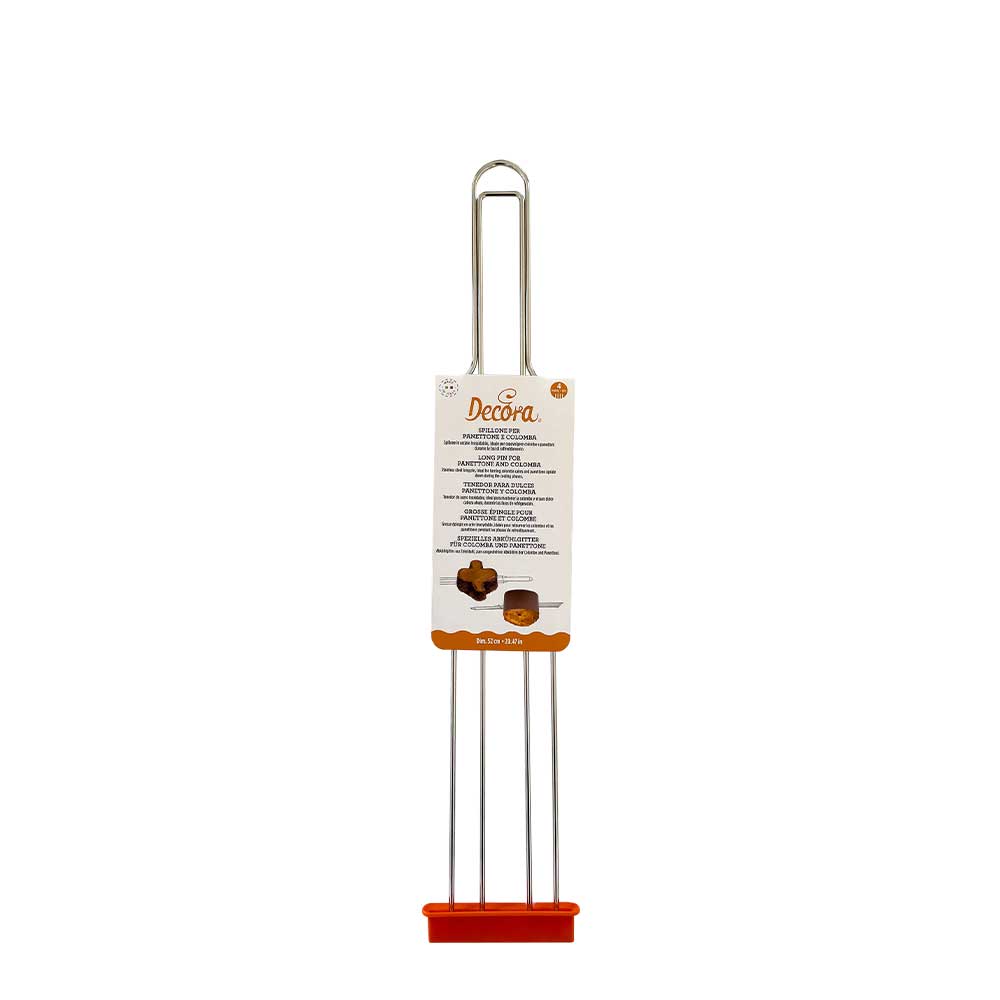 In acciaio inox. Si utilizzano per capovolgere colombe o panettoni. Garantiscono un miglior supporto durante le fasi di raffreddamento del dolce.
