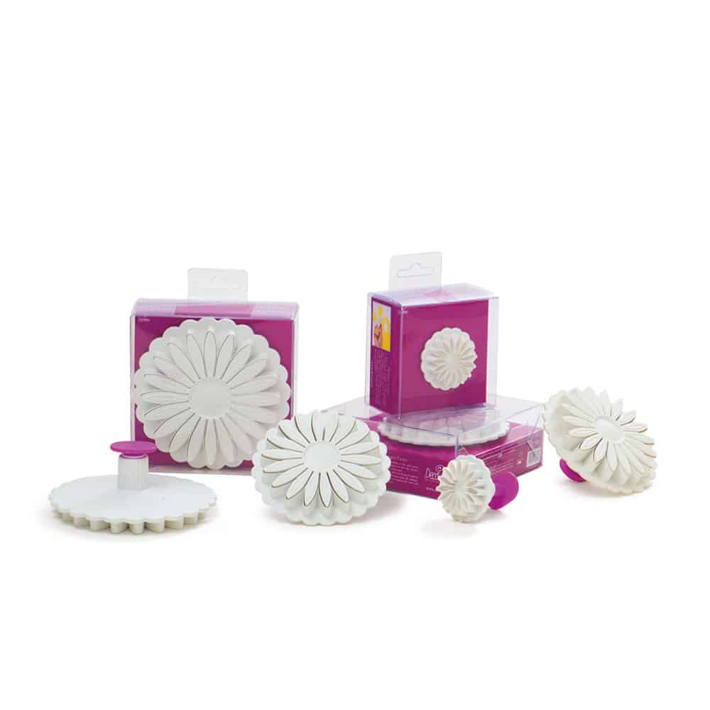 Realizzati in materiale plastico adatto al contatto con alimenti. Creati per realizzare meravigliosi fiori in pasta di gomma e in pasta di zucchero. Oltre a tagliare la pasta di gomma nella forma della gerbera, lo stampo consente di imprimere sulla superficie le venature ed i dettagli dei fiori.