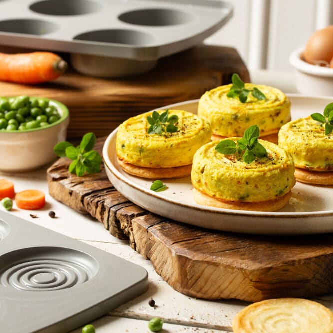 Set 2 stampi in silicone*, di due profondità diverse, ideali per preparazioni dolci e salate. Composto per il 100% da Silicone Platinum*, resistenti sia alla cottura che al congelamento.