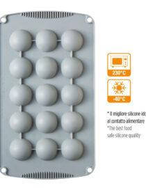 Dimensione stampo: cm 30 x 17 x 3 h – 15 Cavità – Dimensione cavità : cm ø 4 x h 2