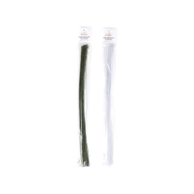 Fili di ferro rivestiti con del nastro di carta verde o bianco, ideali per il montaggio ed il sostegno di fiori in pasta di gomma. Disponibili in varie dimensioni, a seconda della grandezza del fiore su cui lavorare.