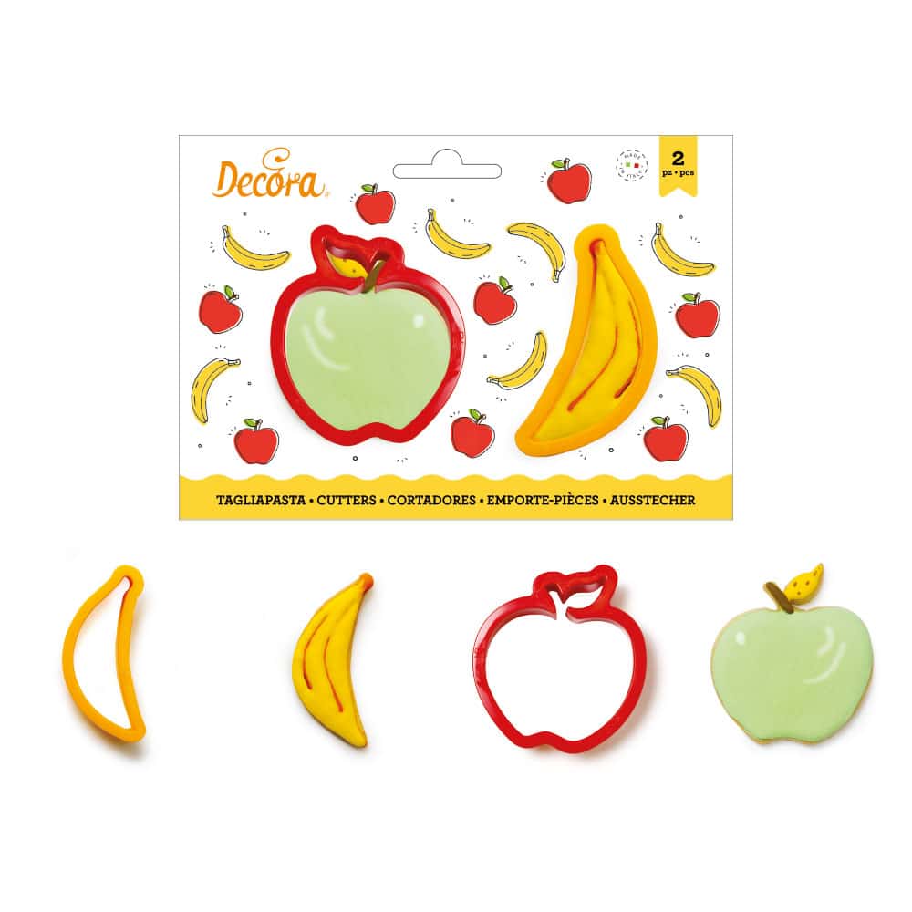 Dimensione: Banana 2,5 x 8,5 x 2,2 h cm – Mela 7 x 7,5 x 2,2 h cm
