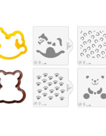Un set composto da 2 tagliapasta in plastica, perfetti per dare forma a biscotti o ricavare sagome e topper in pasta di zucchero e pasta di gomma e 4 stencil, in plastica per alimenti, perfetti per realizzare disegni tridimensionali con la ghiaccia reale, la crema al burro, lo zucchero a velo, il cacao, le polveri colorate, gli spray coloranti o l’aerografo. Per ottenere dei biscotti perfetti infarina lo stampo prima di utilizzarlo sull’impasto.