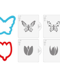 Un set composto da 2 tagliapasta in plastica, perfetti per dare forma a biscotti o ricavare sagome e topper in pasta di zucchero e pasta di gomma e 4 stencil, in plastica per alimenti, perfetti per realizzare disegni tridimensionali con la ghiaccia reale, la crema al burro, lo zucchero a velo, il cacao, le polveri colorate, gli spray coloranti o l’aerografo. Per ottenere dei biscotti perfetti infarina lo stampo prima di utilizzarlo sull’impasto.