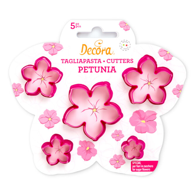 Kit di 5 tagliapasta in plastica per realizzare una Petunia in diverse dimensioni.