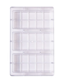 Stampo professionale in copoliestere, materiale che consente di ottenere cioccolatini lucidi e perfetti. Resistente a temperature tra -10° e +50° C.