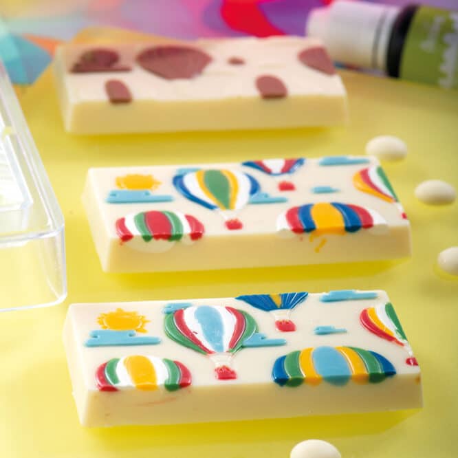 Stampo professionale in policarbonato, un materiale che consente di ottenere cioccolatini lucidi e perfetti. E’ importante temperare bene il cioccolato prima di versarlo nello stampo.