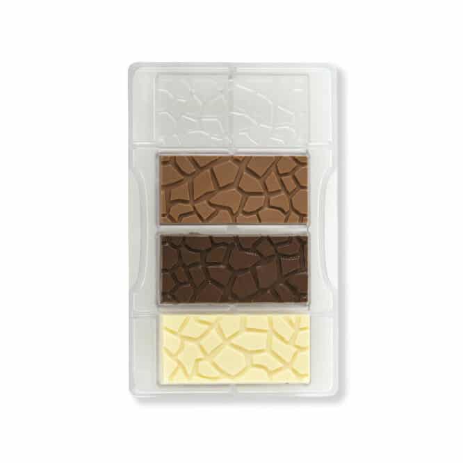 Stampo professionale in policarbonato, un materiale che consente di ottenere cioccolatini lucidi e perfetti. E’ importante temperare bene il cioccolato prima di versarlo nello stampo.
