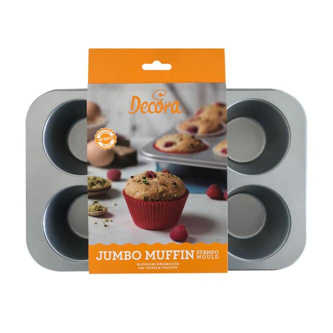Teglia in acciaio antiaderente, perfetta per realizzare 6 jumbo muffin. Lo spessore della teglia consente di cuocere in modo omogeneo muffin sia dolci che salati.