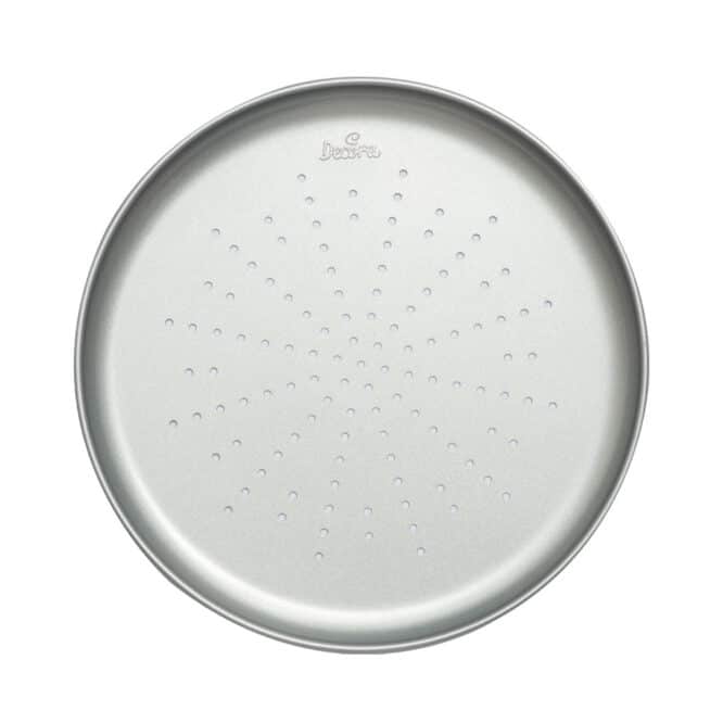 Stampo con rivestimento antiaderente di alta qualitร , con base forata per cotture croccanti. Semplice da utilizzare, รจ perfetto per realizzare pizze e focacce.